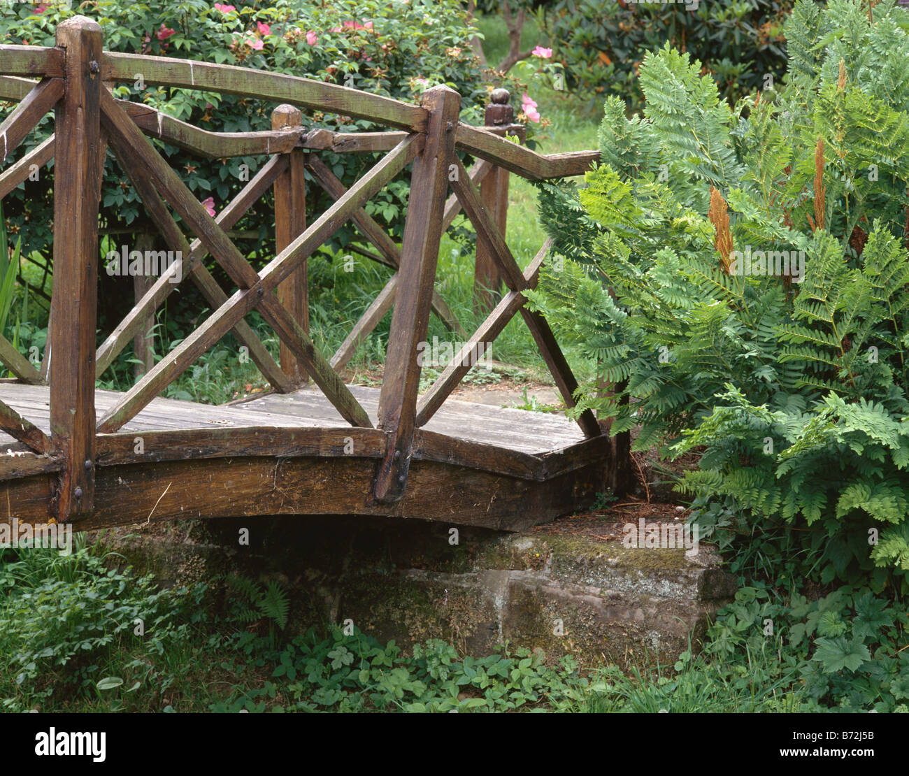 View Garden Bridge Over Stream Pictures. Can be used also for pond bridge. A beautiful garden and bridge over a stream in summer with flowering pink rhododendron tree, also known as a cornish rose, in cornwall, england, united kingdom.